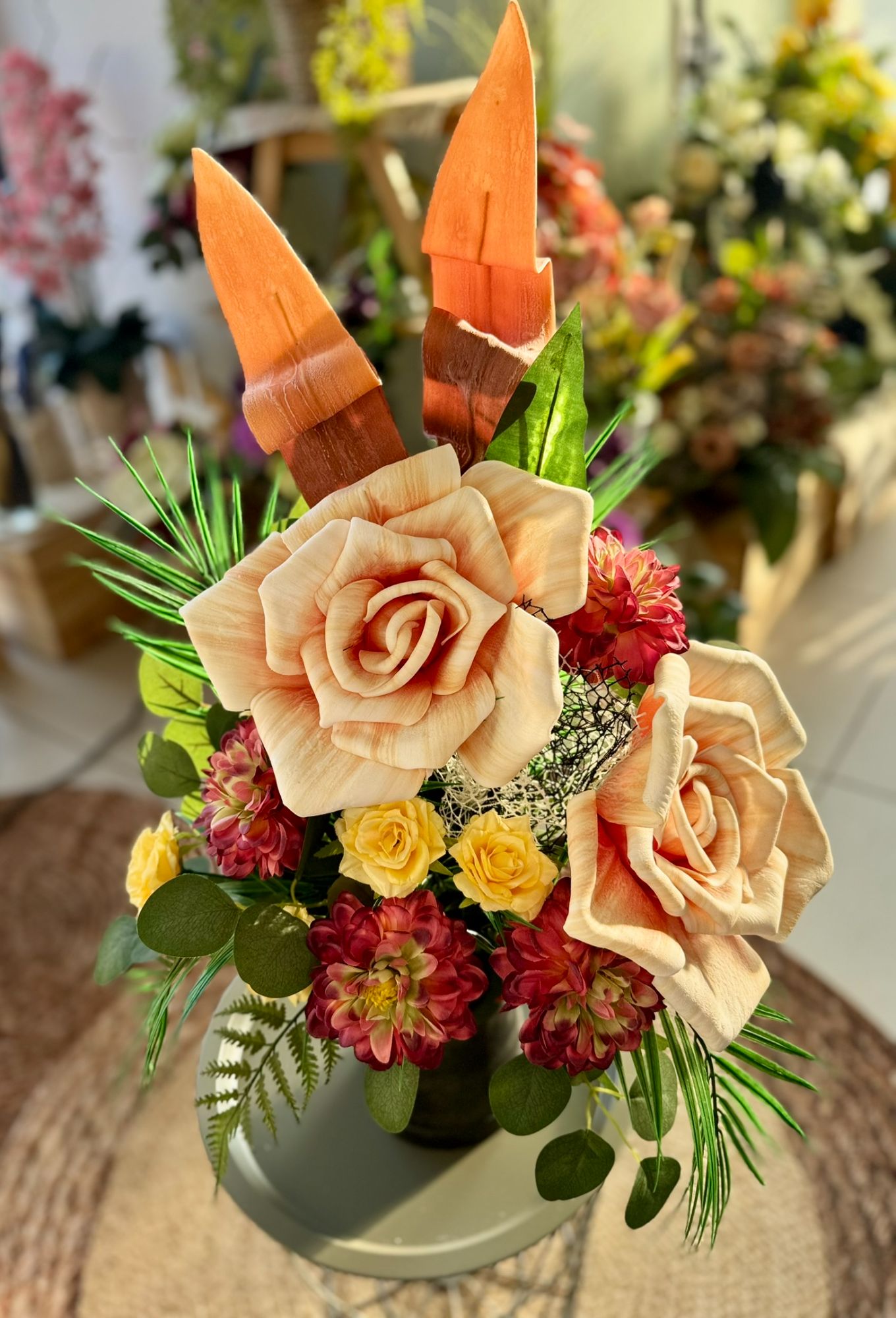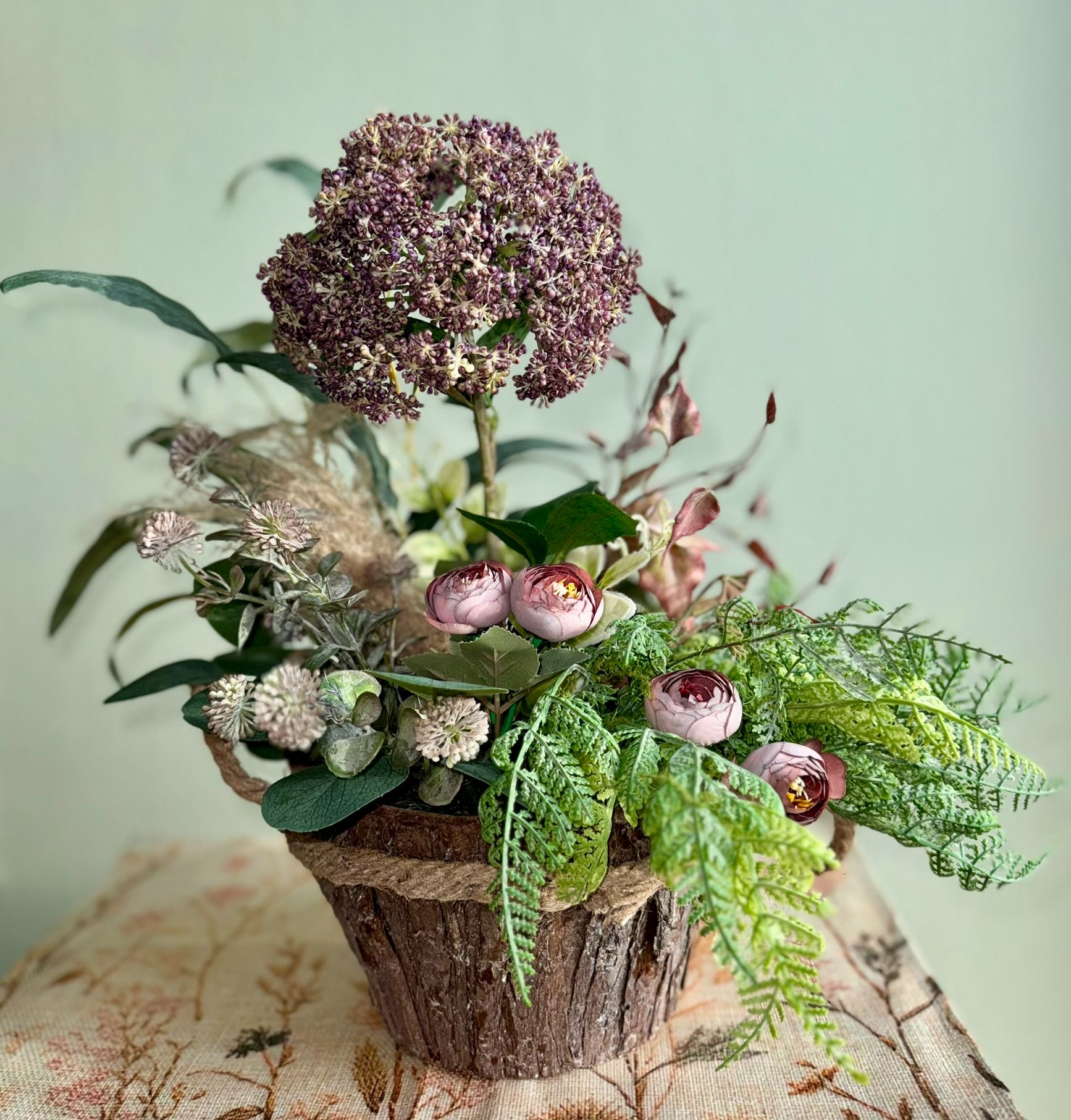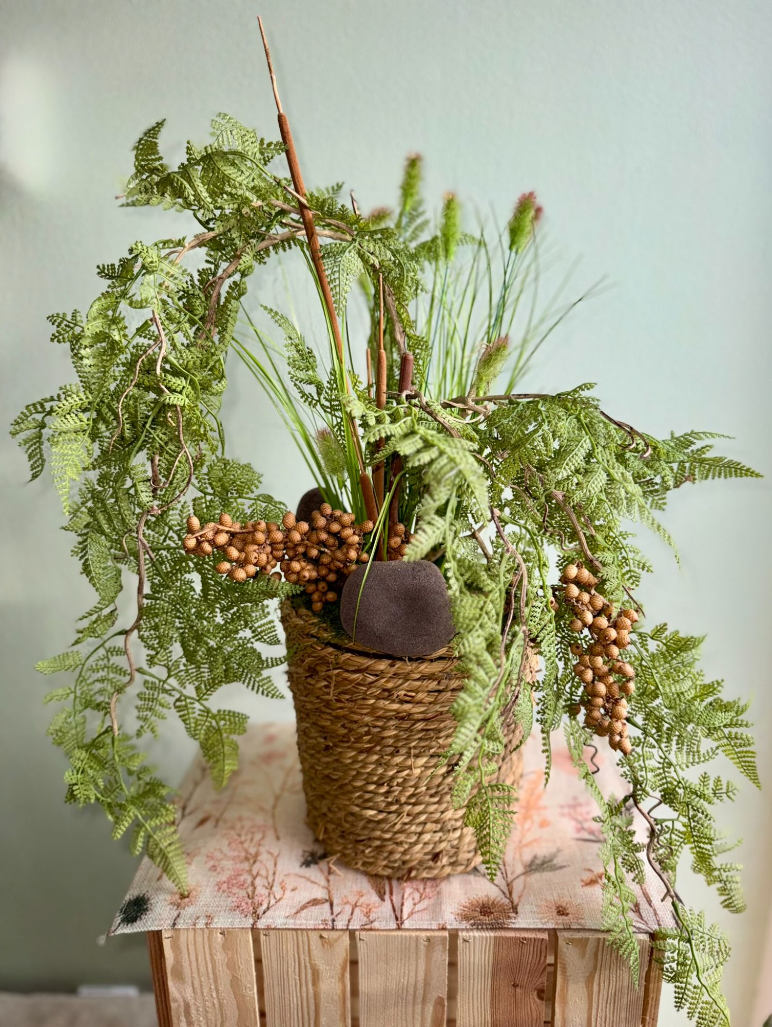 • Kompozycja w drewnianym koszu