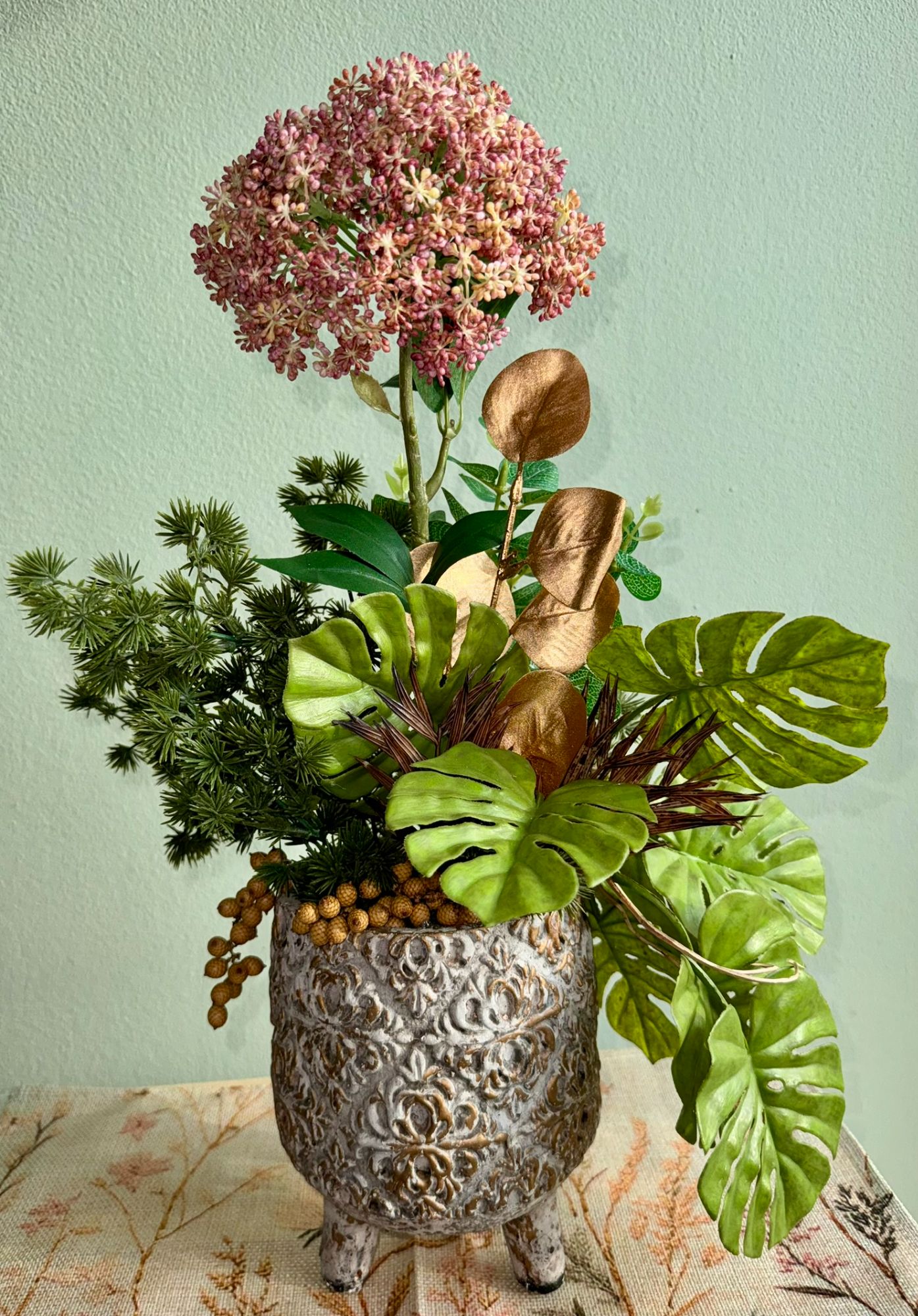 • Kompozycja w zdobionej donicy.