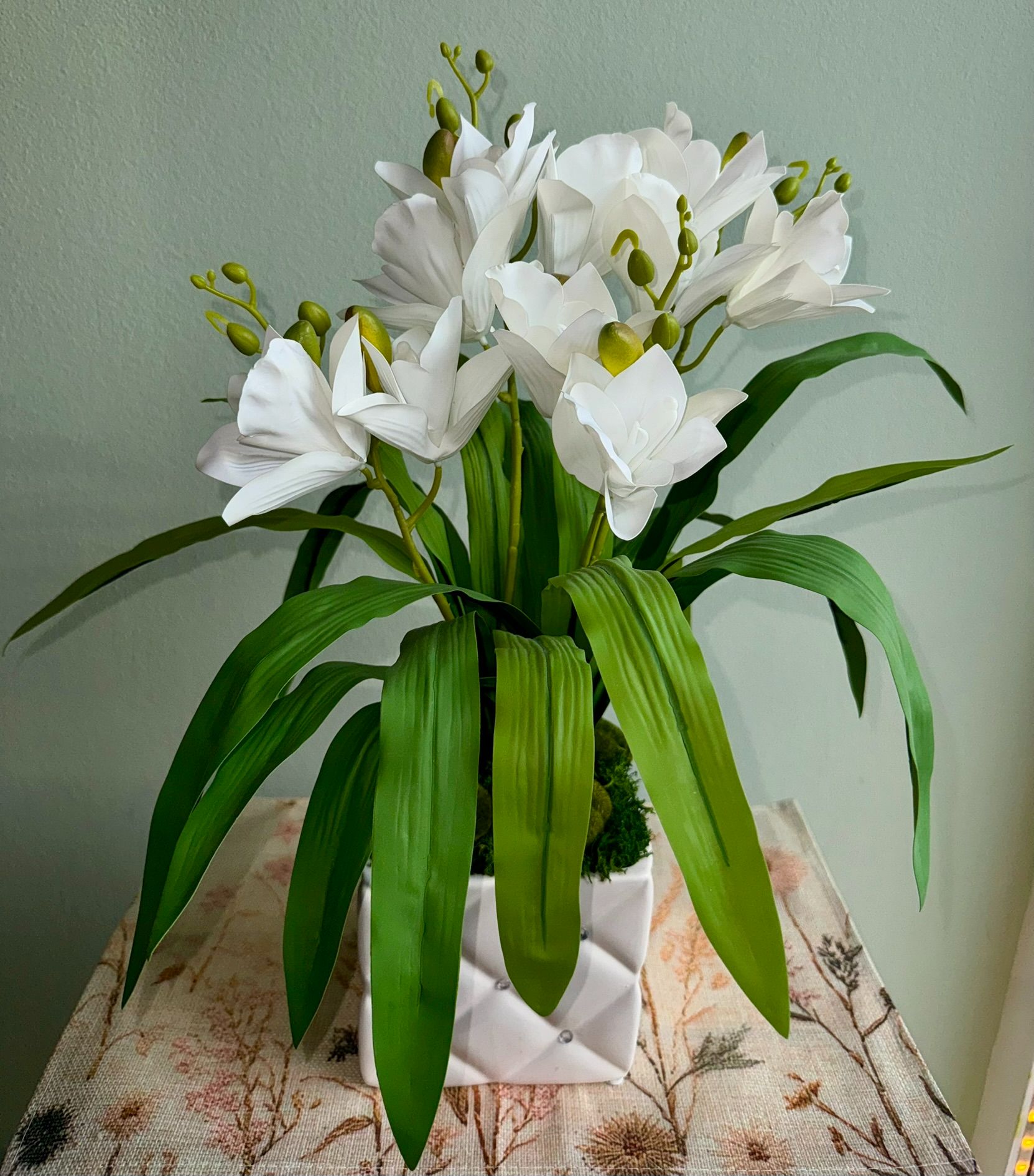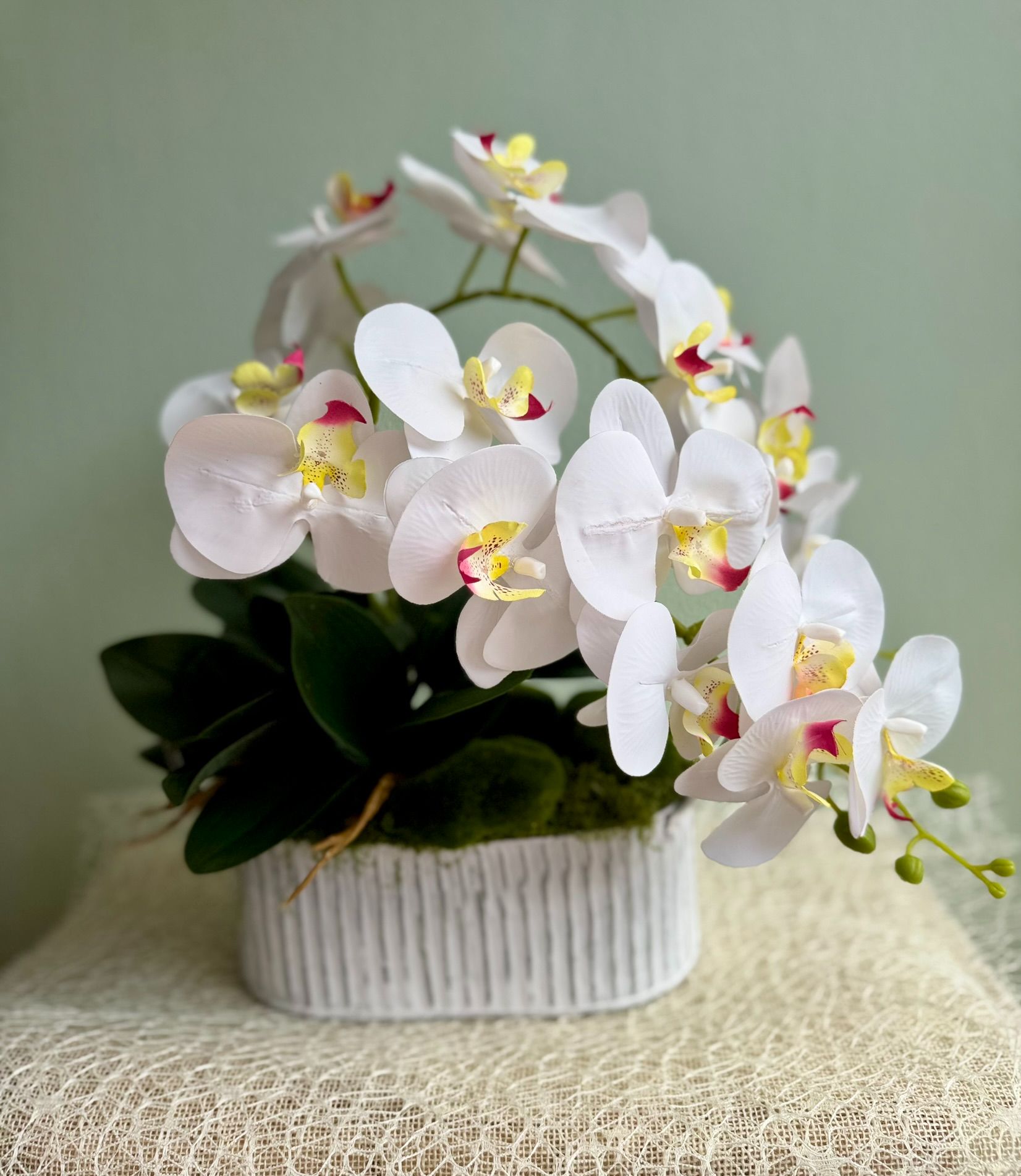 • Storczyk w białej donicy z cyrkoniami.