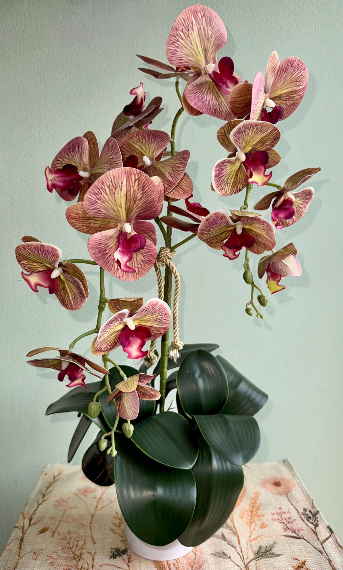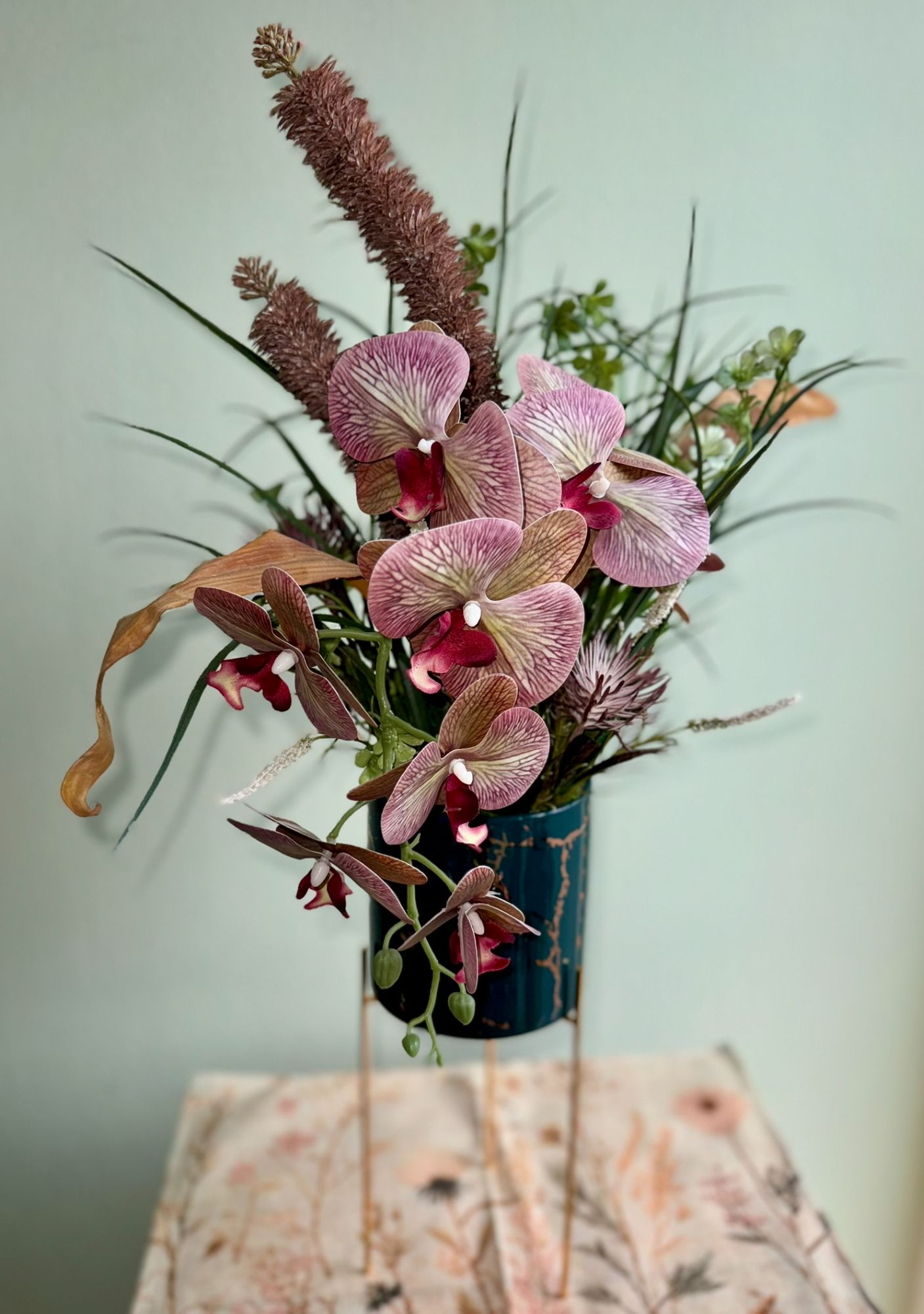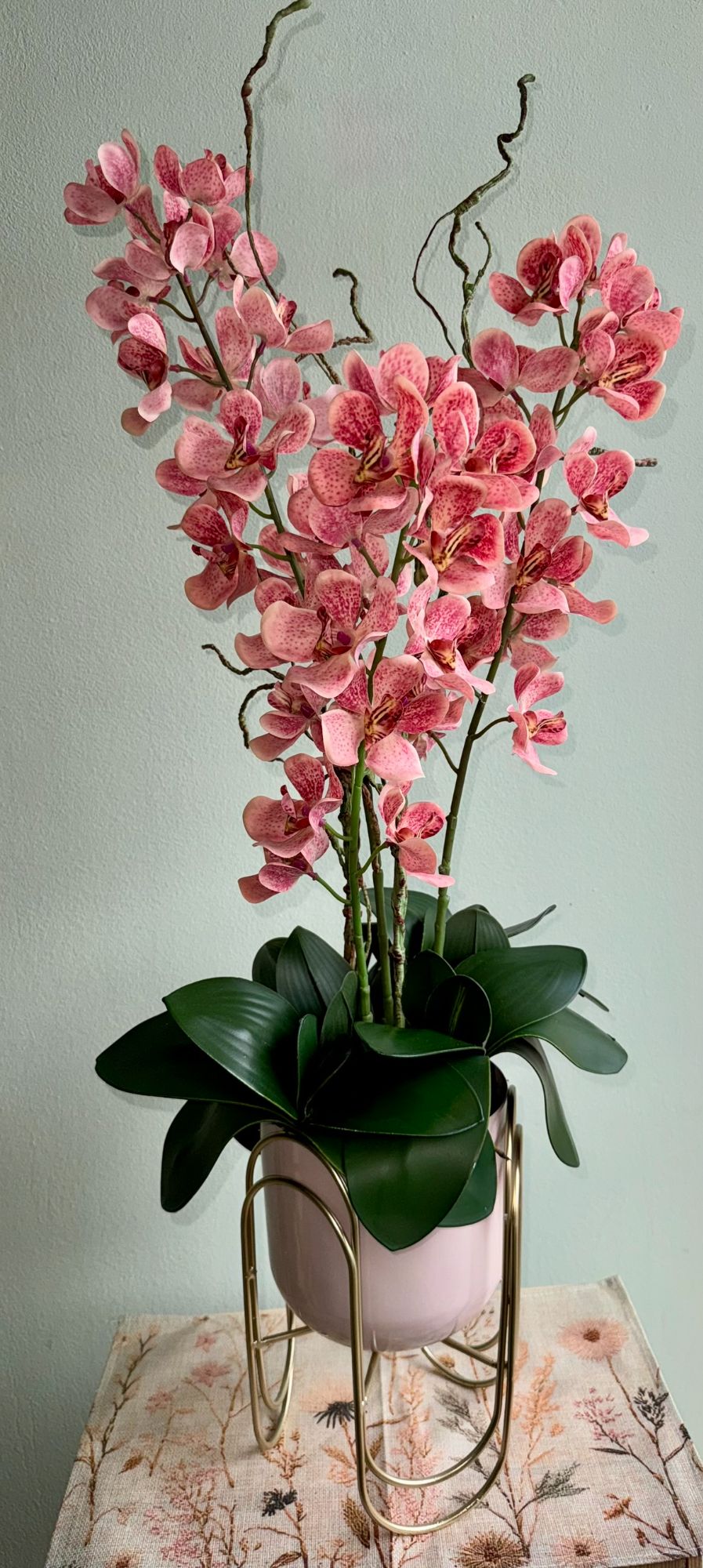 • Storczyk 3pędowy w dekoracyjnej metalowej donicy na nóżkach.