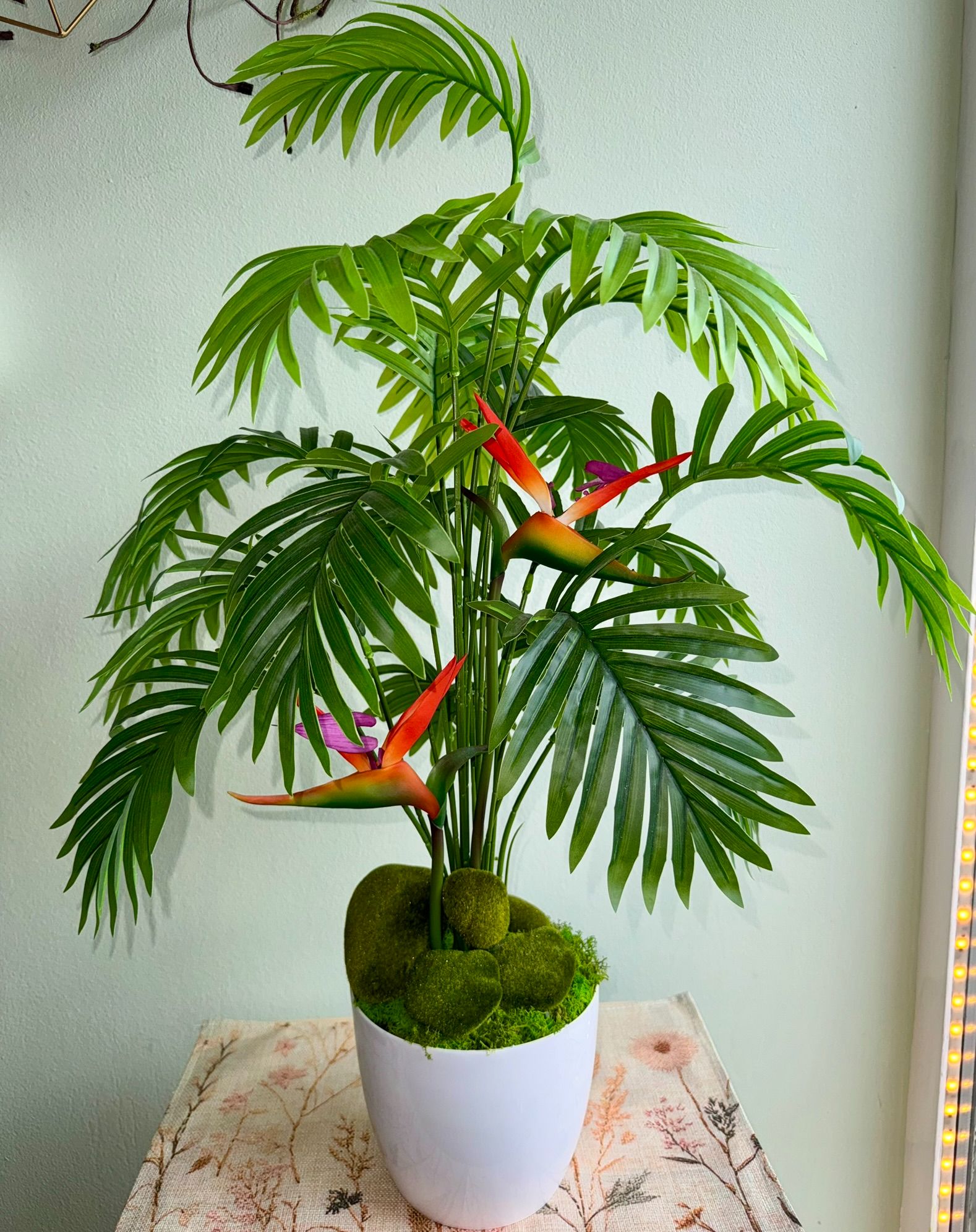• Palma z kwiatami Strelicji i dekorayjnymi kamieniami.