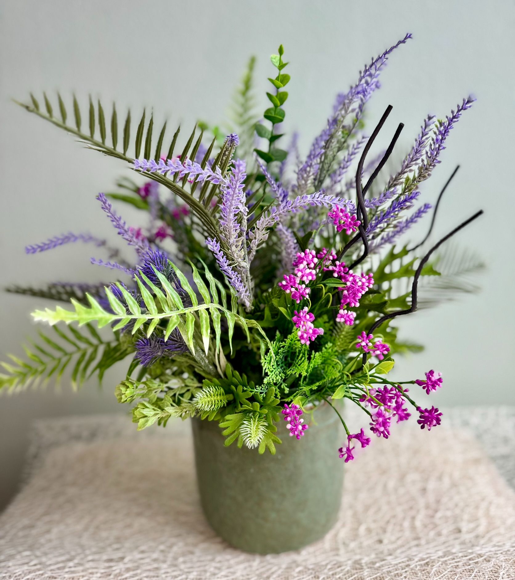 • Kompozycja z paprocią i wrzosem.