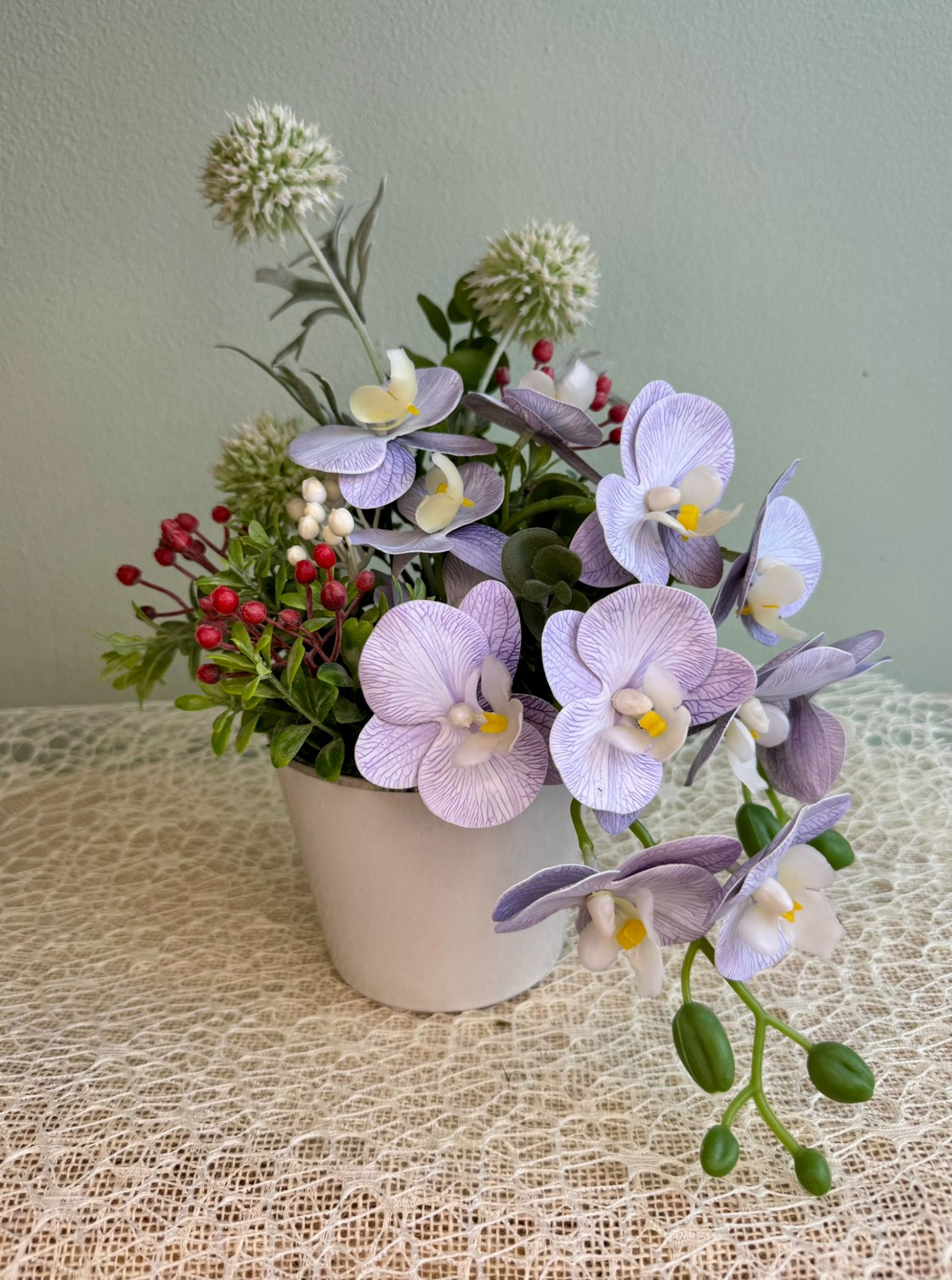 • Kompozycja ze storczykiem w dekoracyjnej donicy na nóżkach