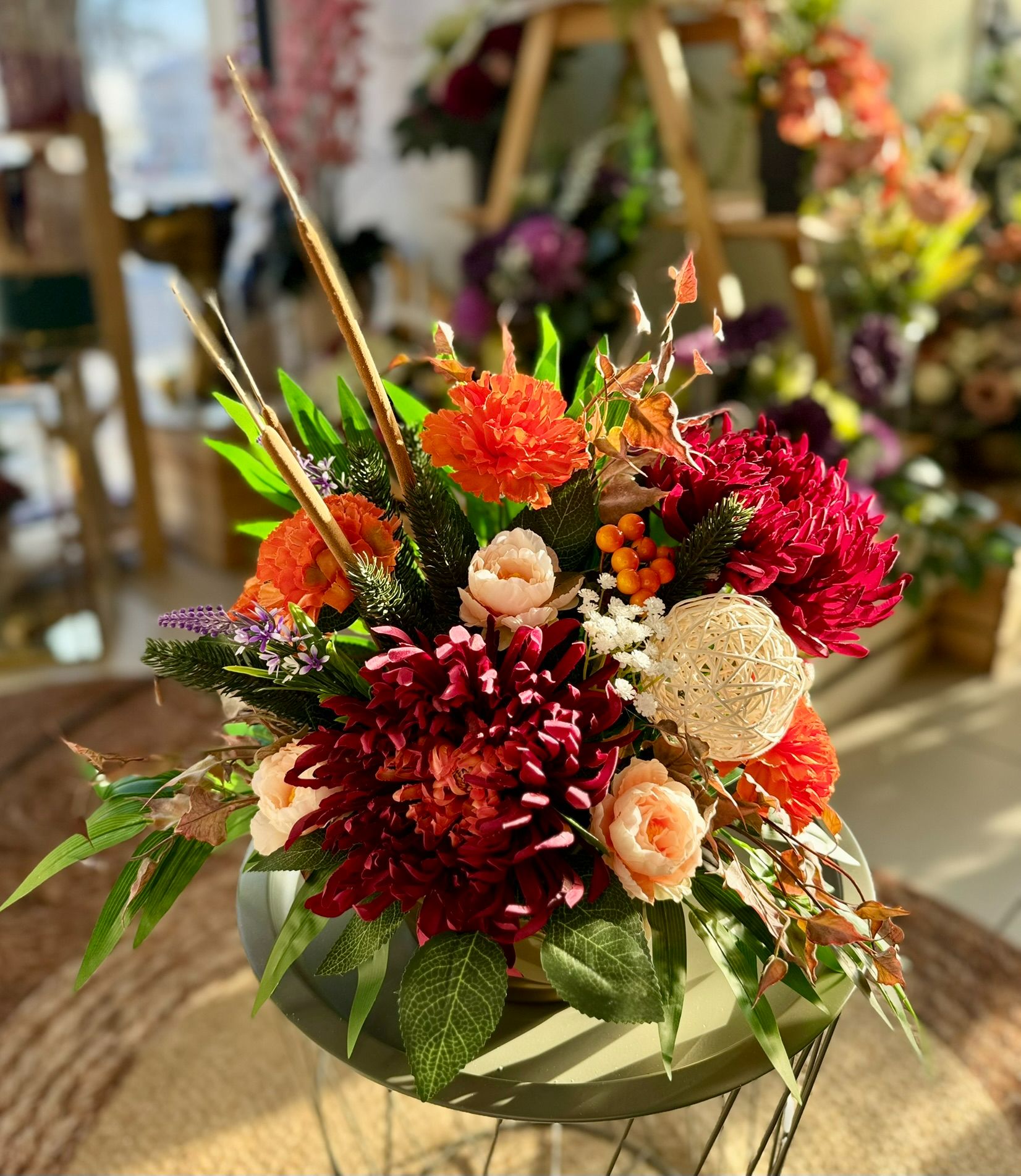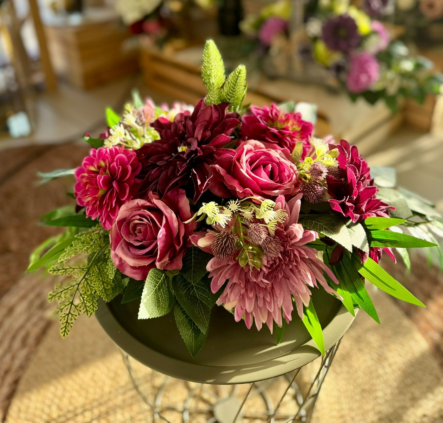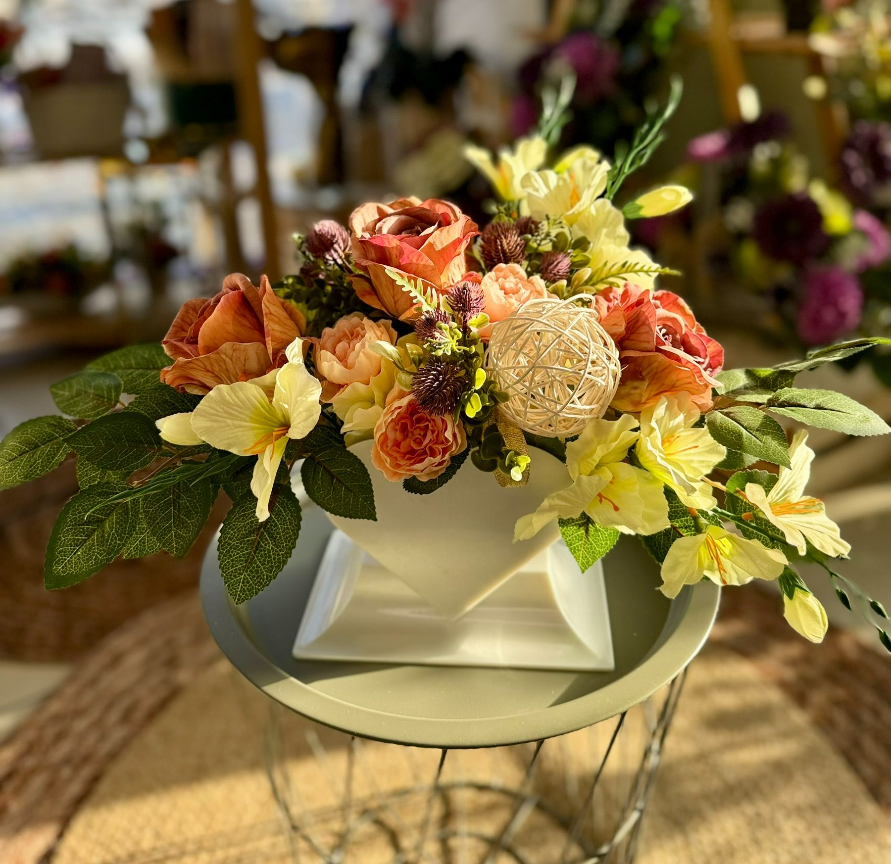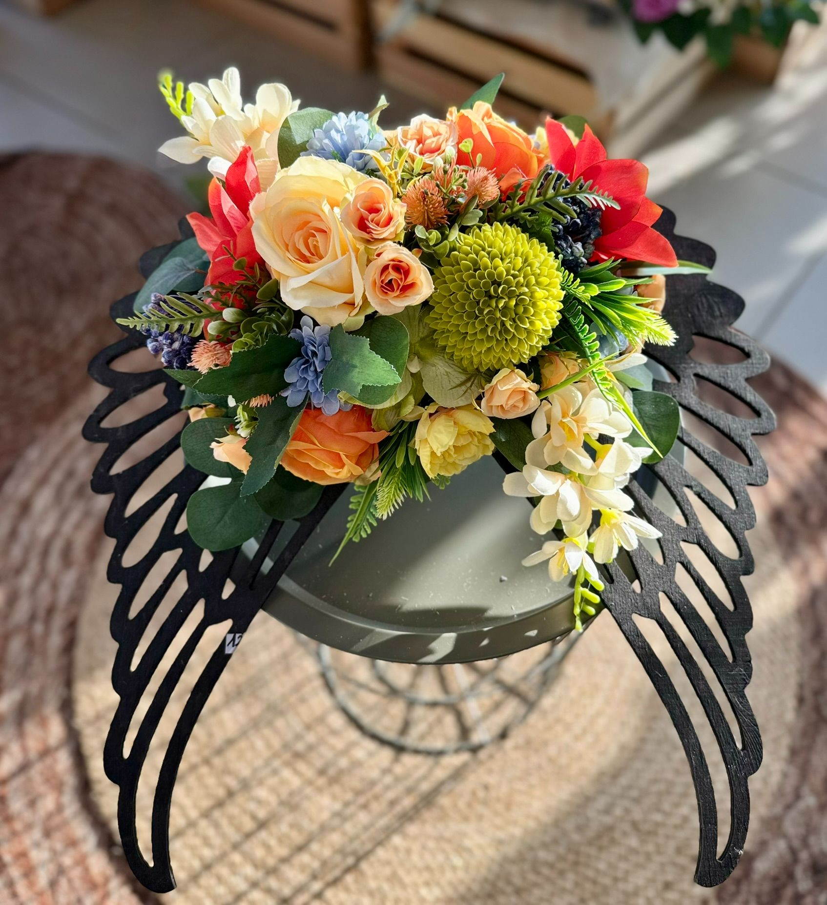 Kompozycja w drewnianym koszu