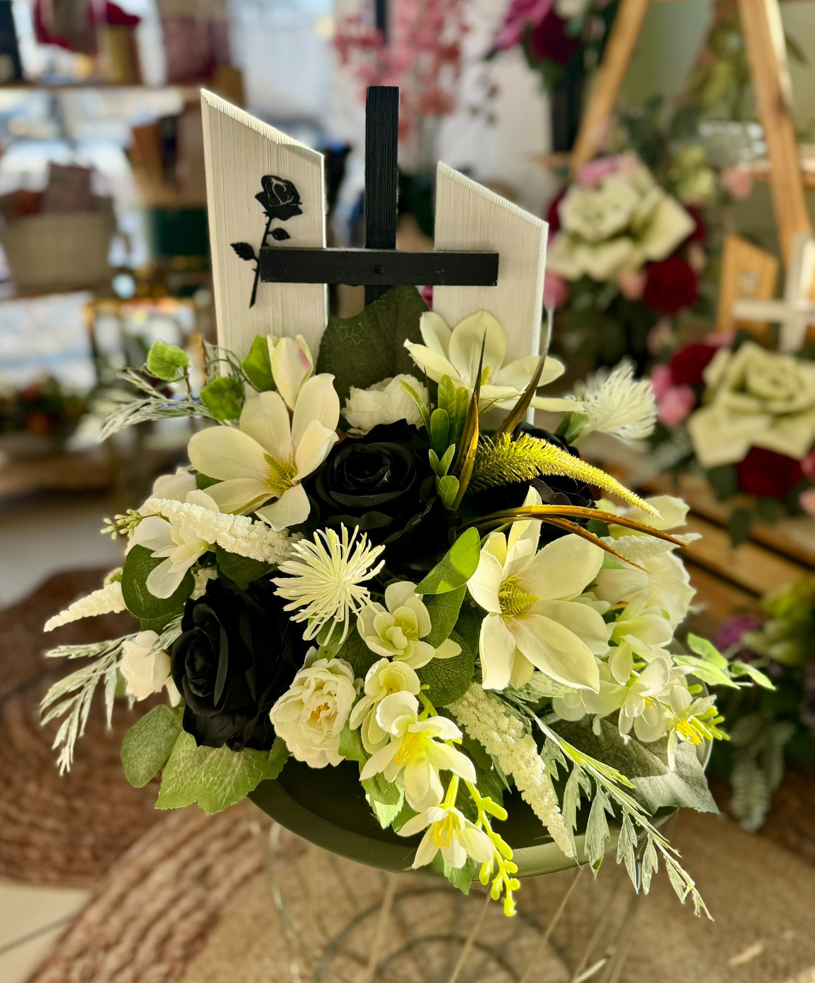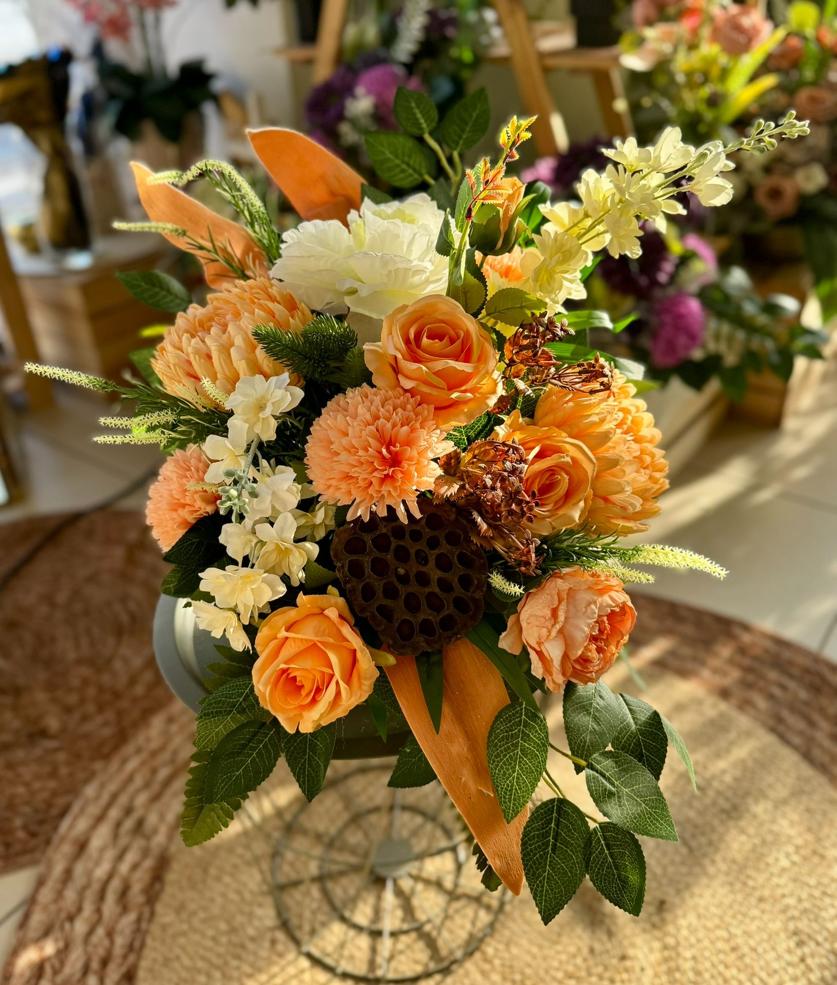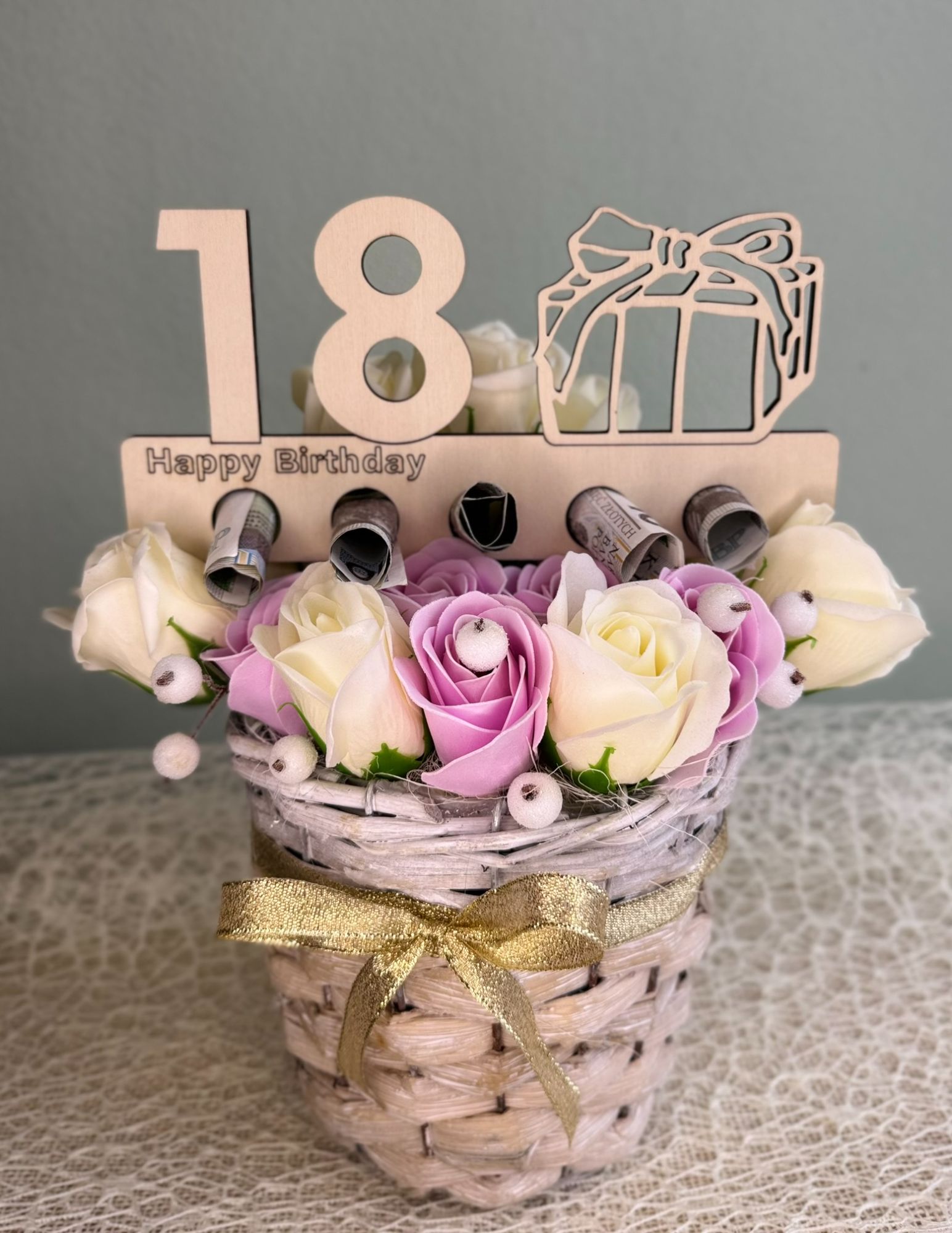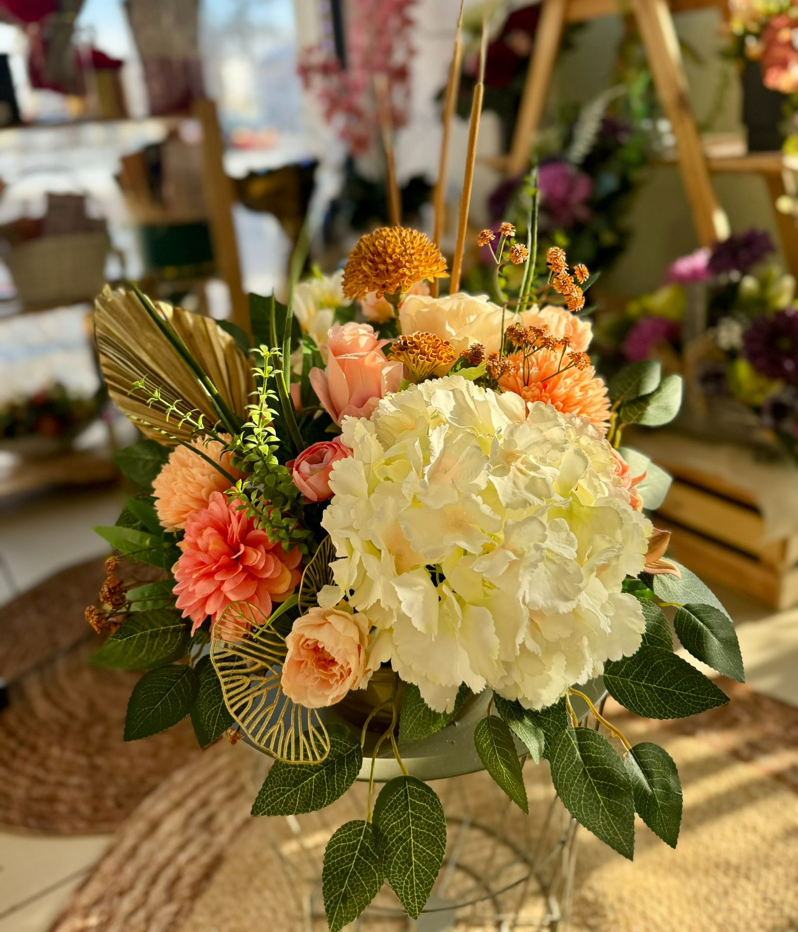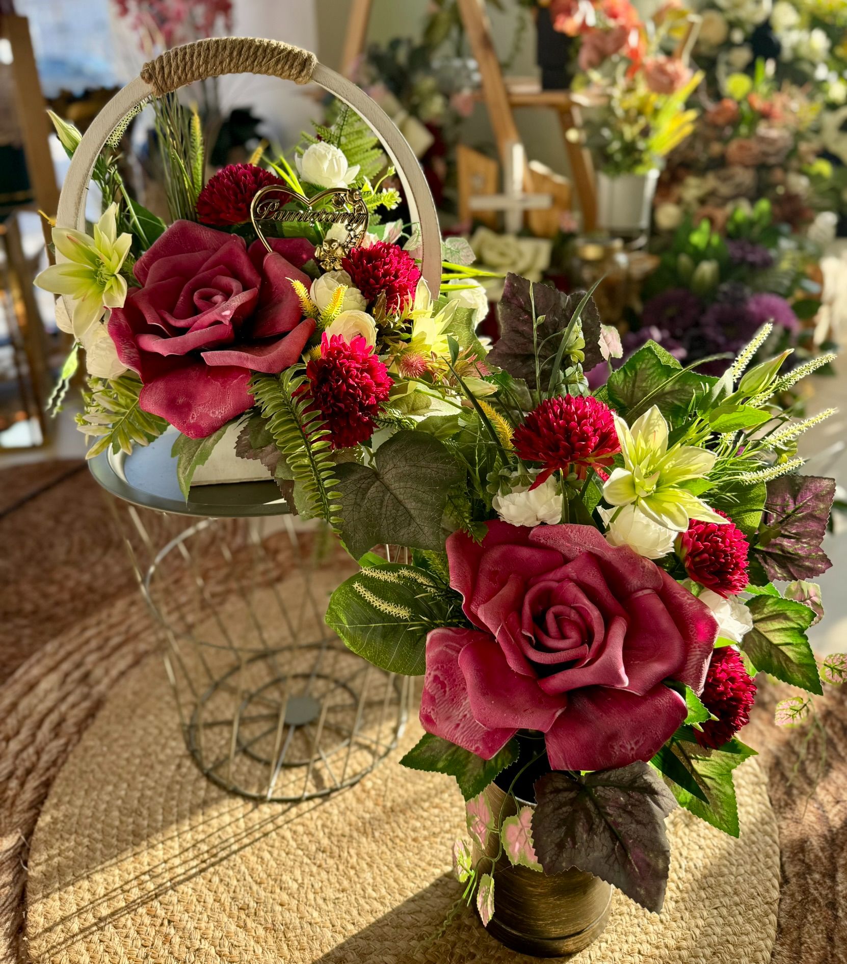 Kompozycja w drewnianym koszu