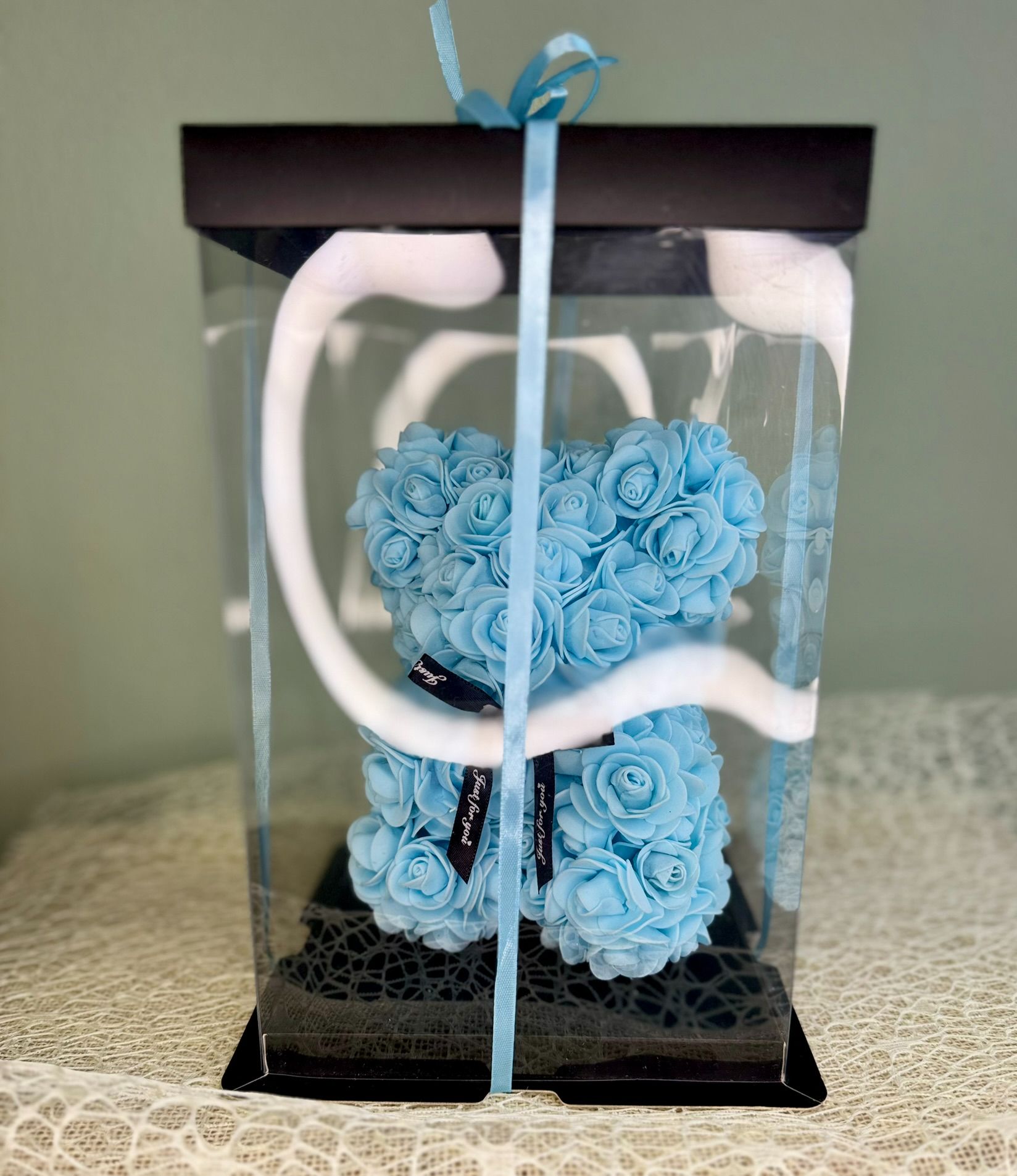 • Niebieski miś z piankowych róż