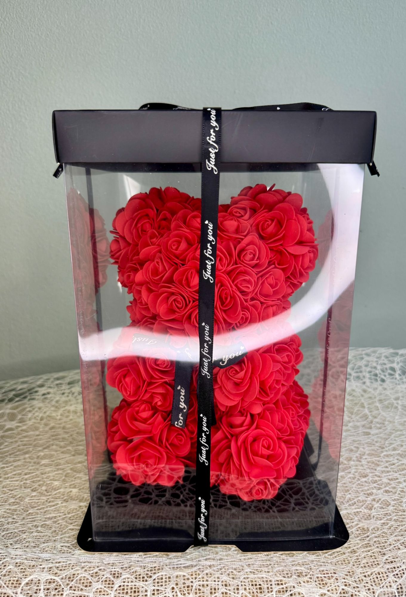 • Czerwony miś z piankowych róż