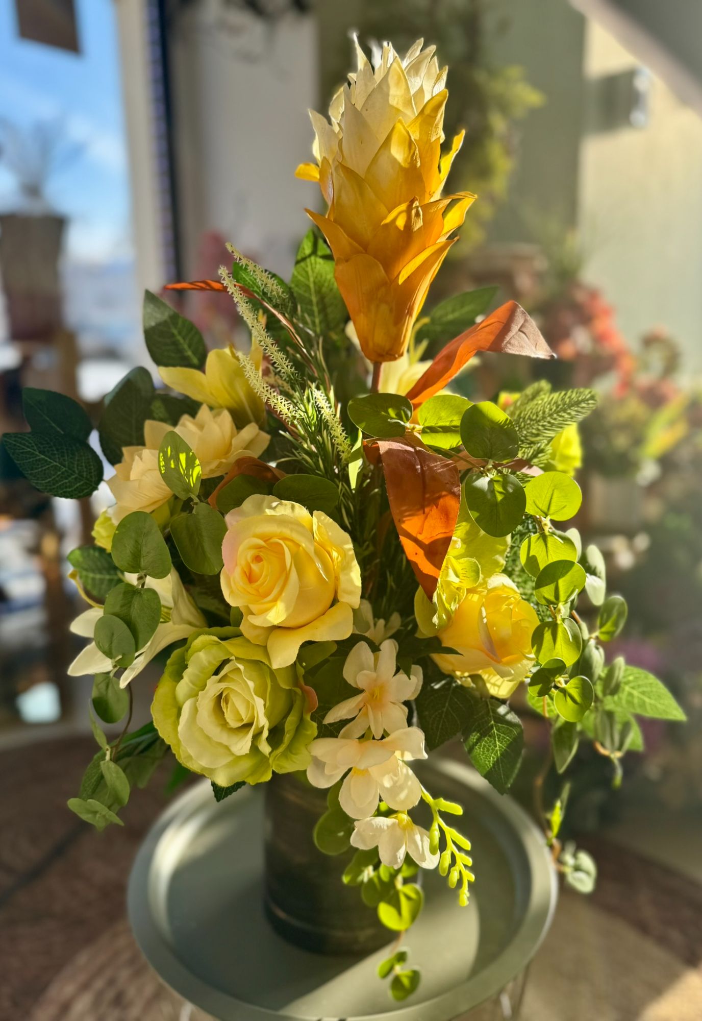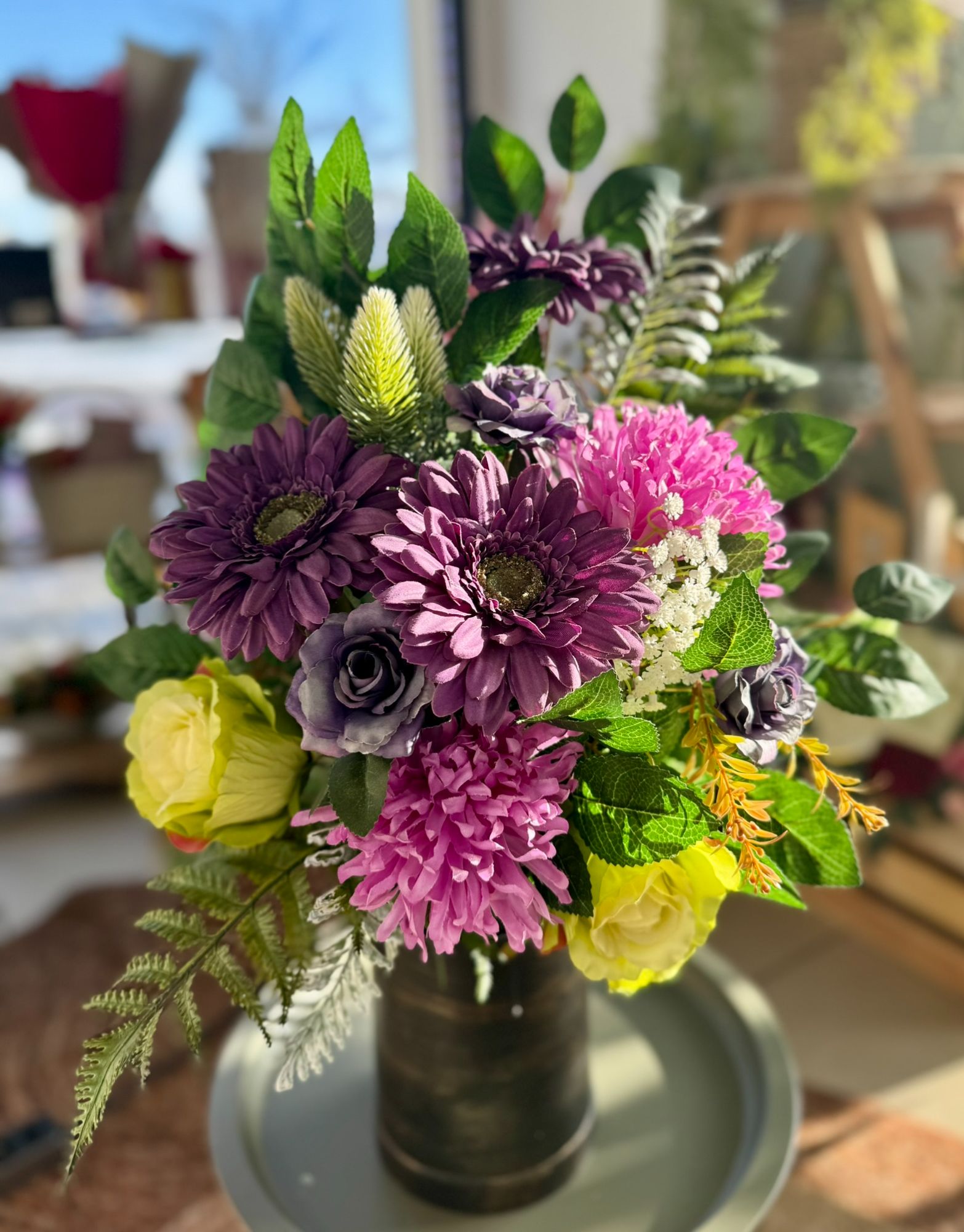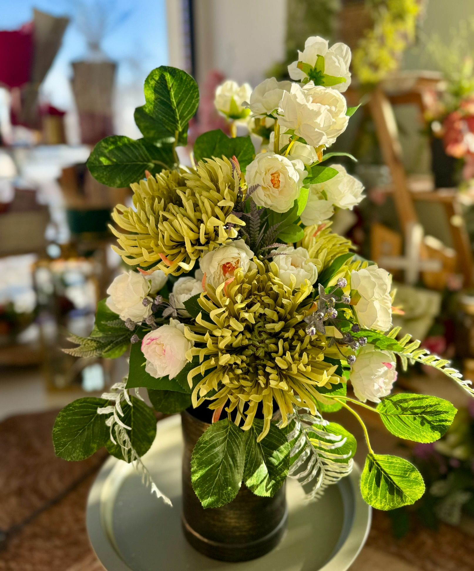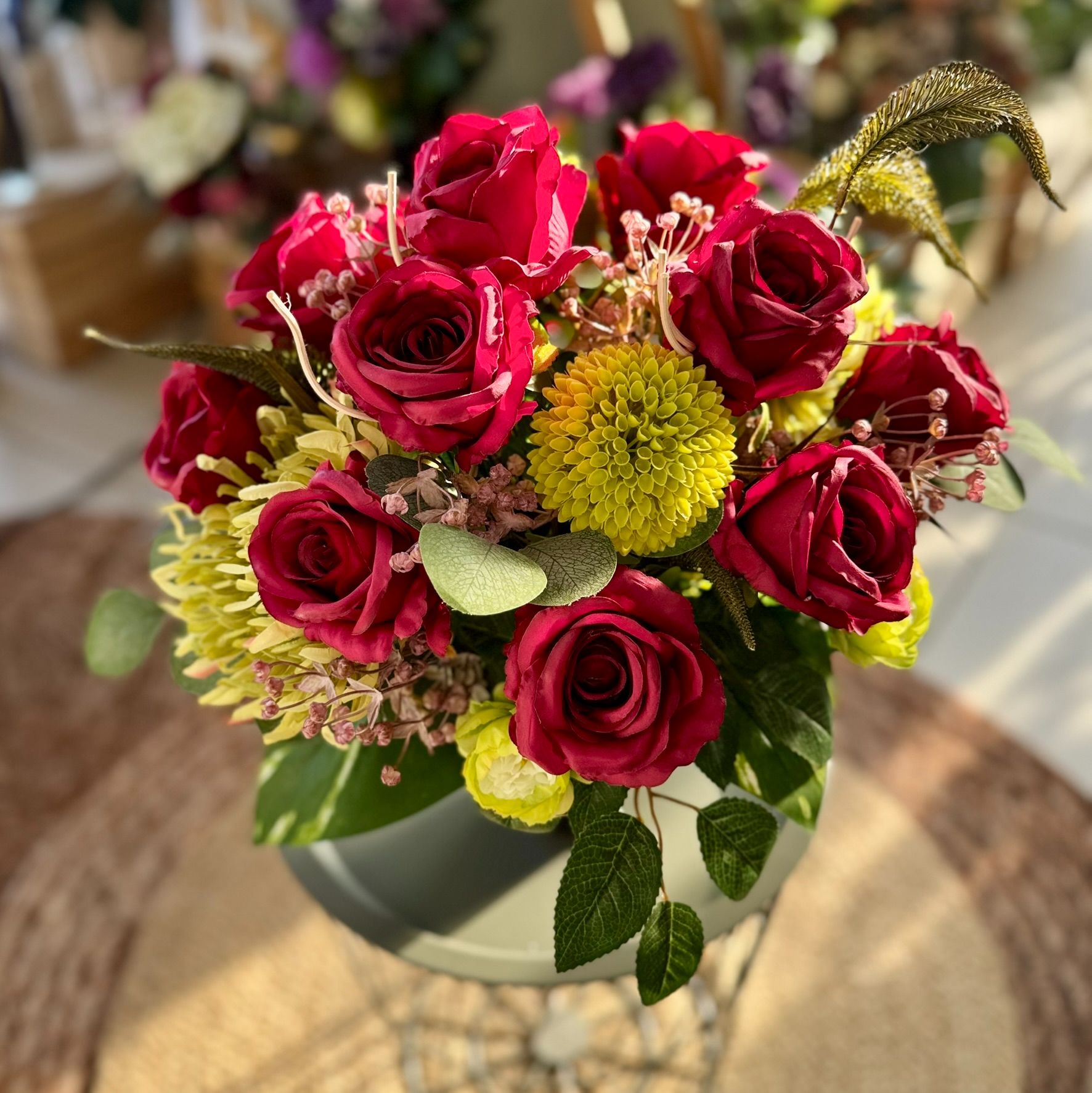 • Kompozycja w betonowej złoconej donicy